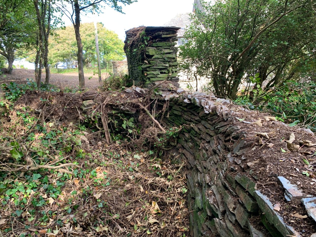 Carl and Roxy, our trusty garden clearers, have been stripping ivy off parts of the old walls of the walled garden. In places you can really see where the walls have become distorted by tree roots or a build up of soil and plant matter over many decades. Once our stonemason recovers from putting his back out, we hope he’ll be able to come and start restoring parts of the wall.